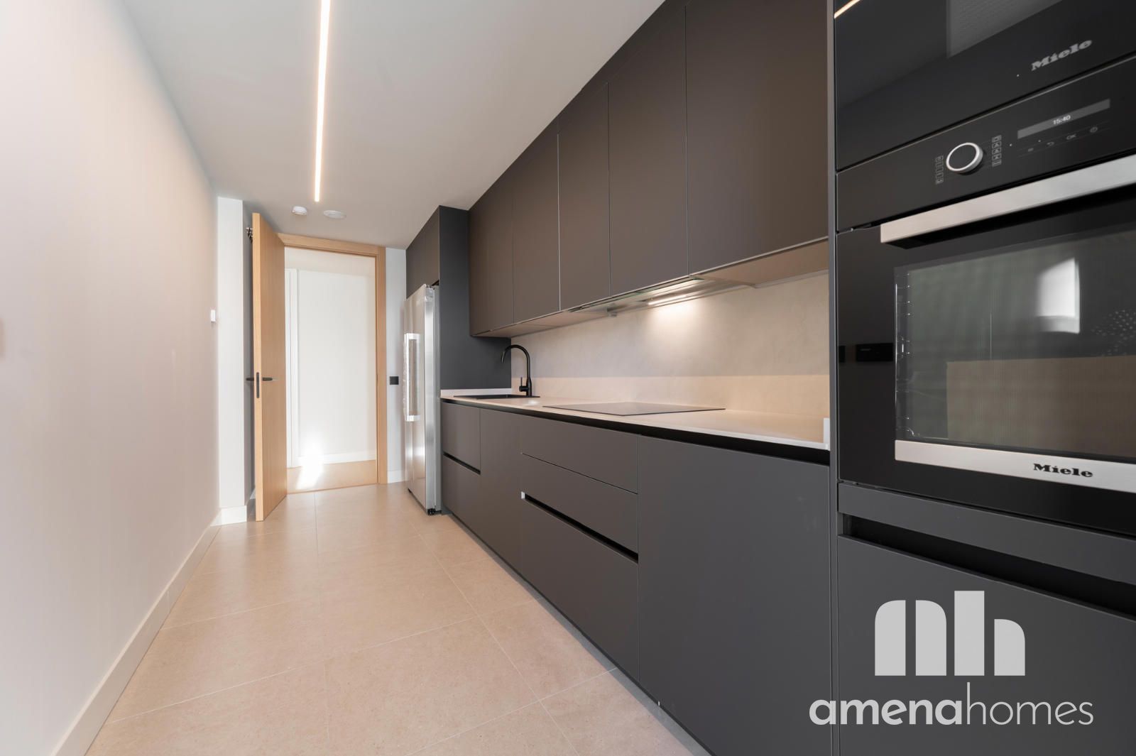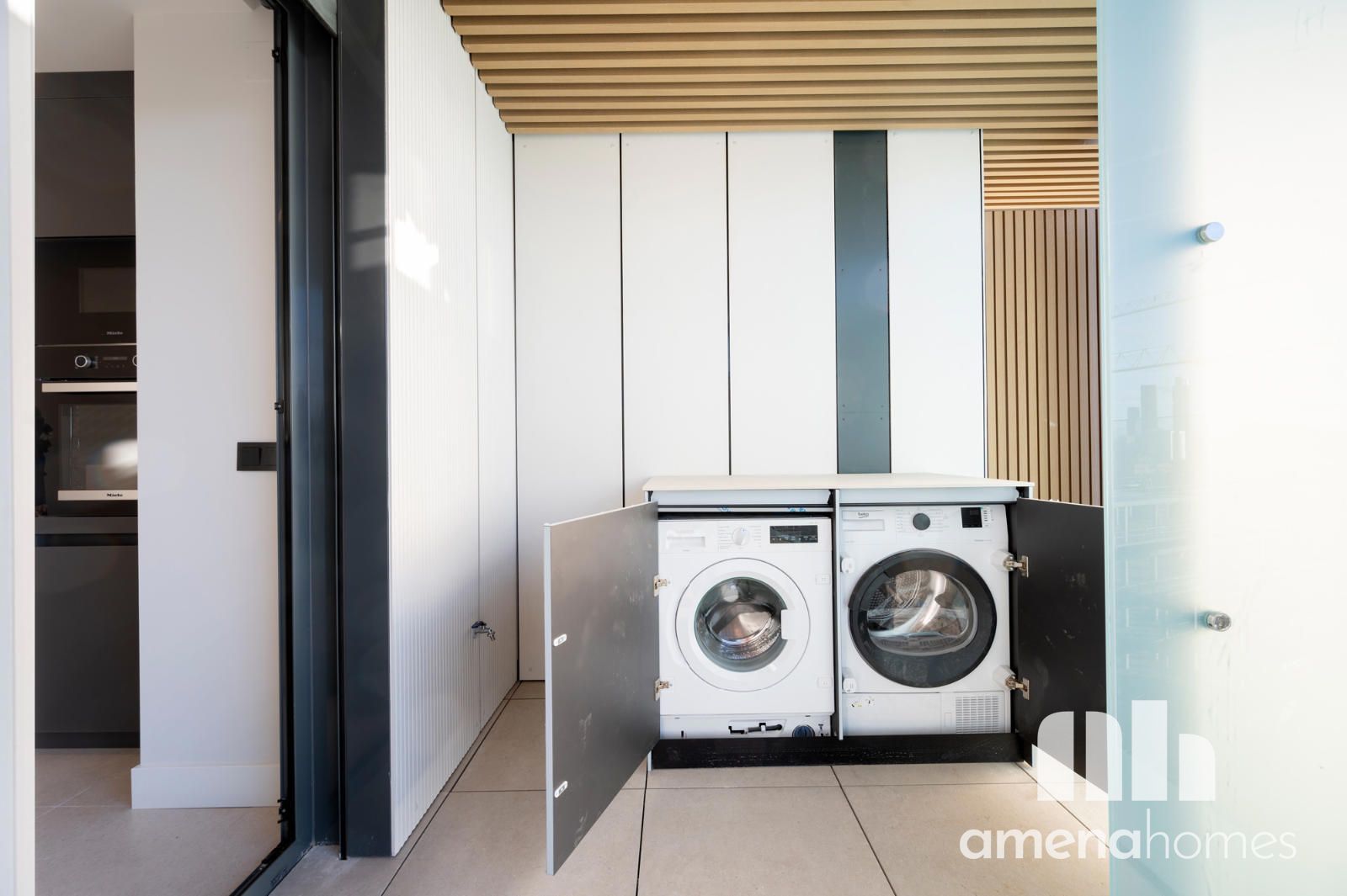 Un elegante salón-comedor con salida a una terraza de 7,5 m² se convierte en el corazón de la casa: perfecto para relajarse, disfrutar de la luz natural o compartir momentos al aire libre. La cocina independiente, totalmente equipada con electrodomésticos de primeras marcas (Siemens y Miele), incluye además una zona de tendedero, que aporta practicidad sin renunciar al diseño.