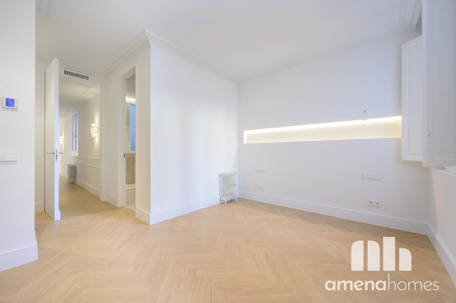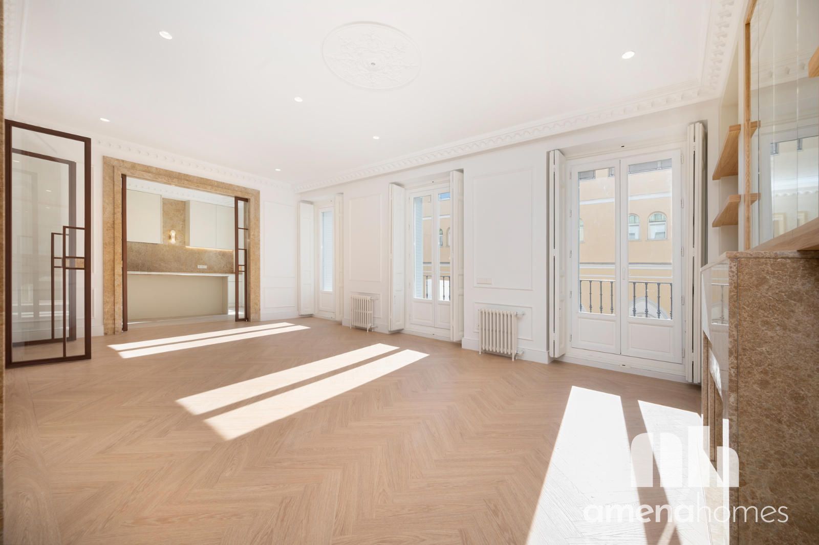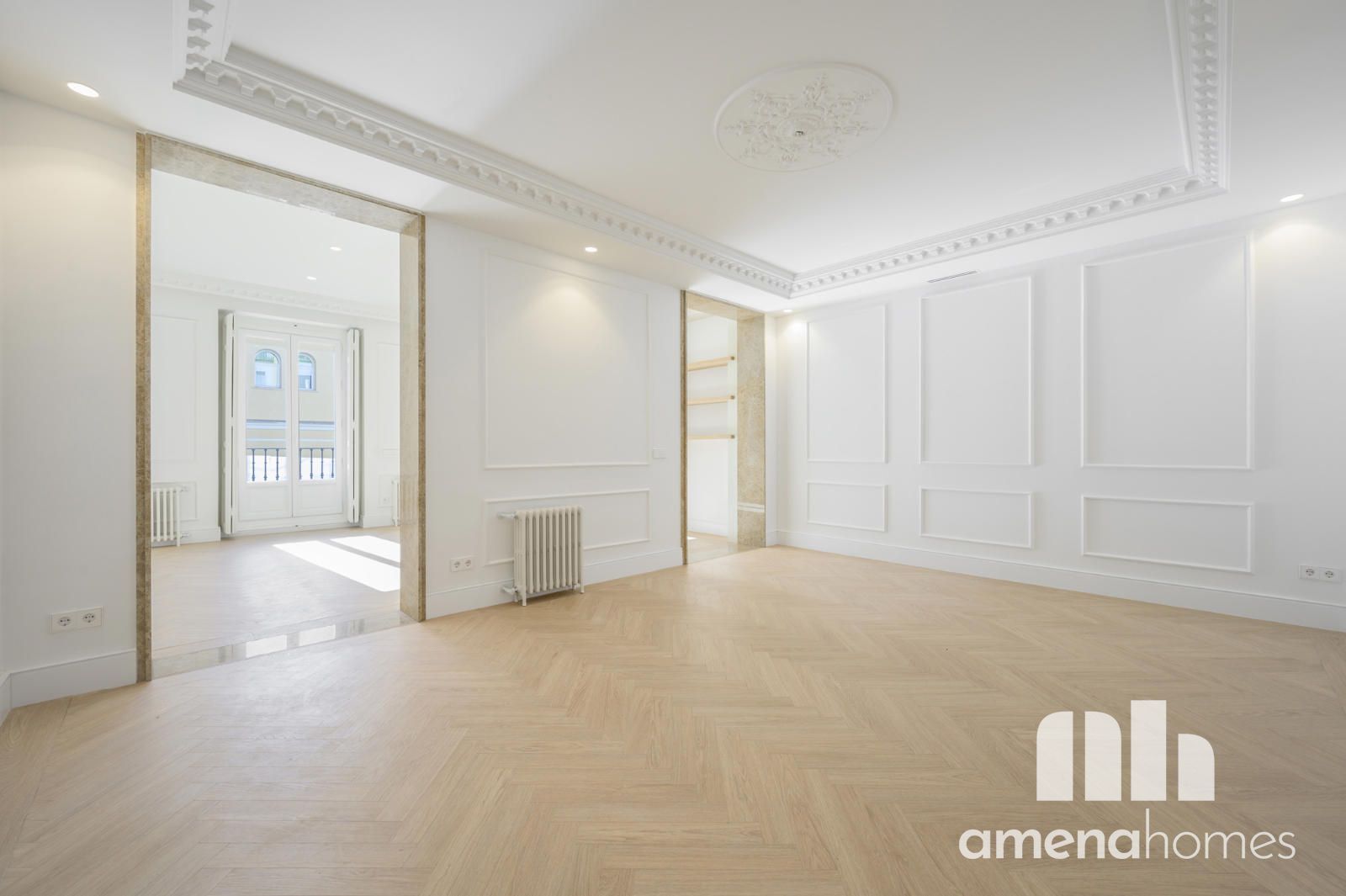 Amena Homes Real Estate presenta esta exclusiva y elegante vivienda ubicada en una representativa finca clásica, completamente reformada y a estrenar con un cuidado diseño que combina la esencia arquitectónica original con un estilo contemporáneo y sofisticado en pleno centro de Madrid.