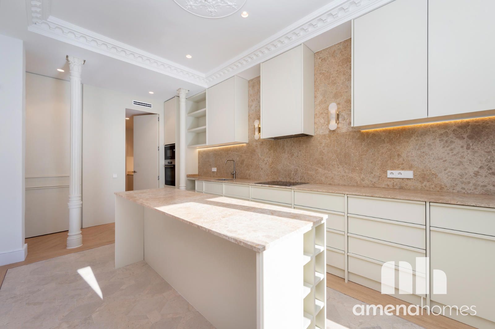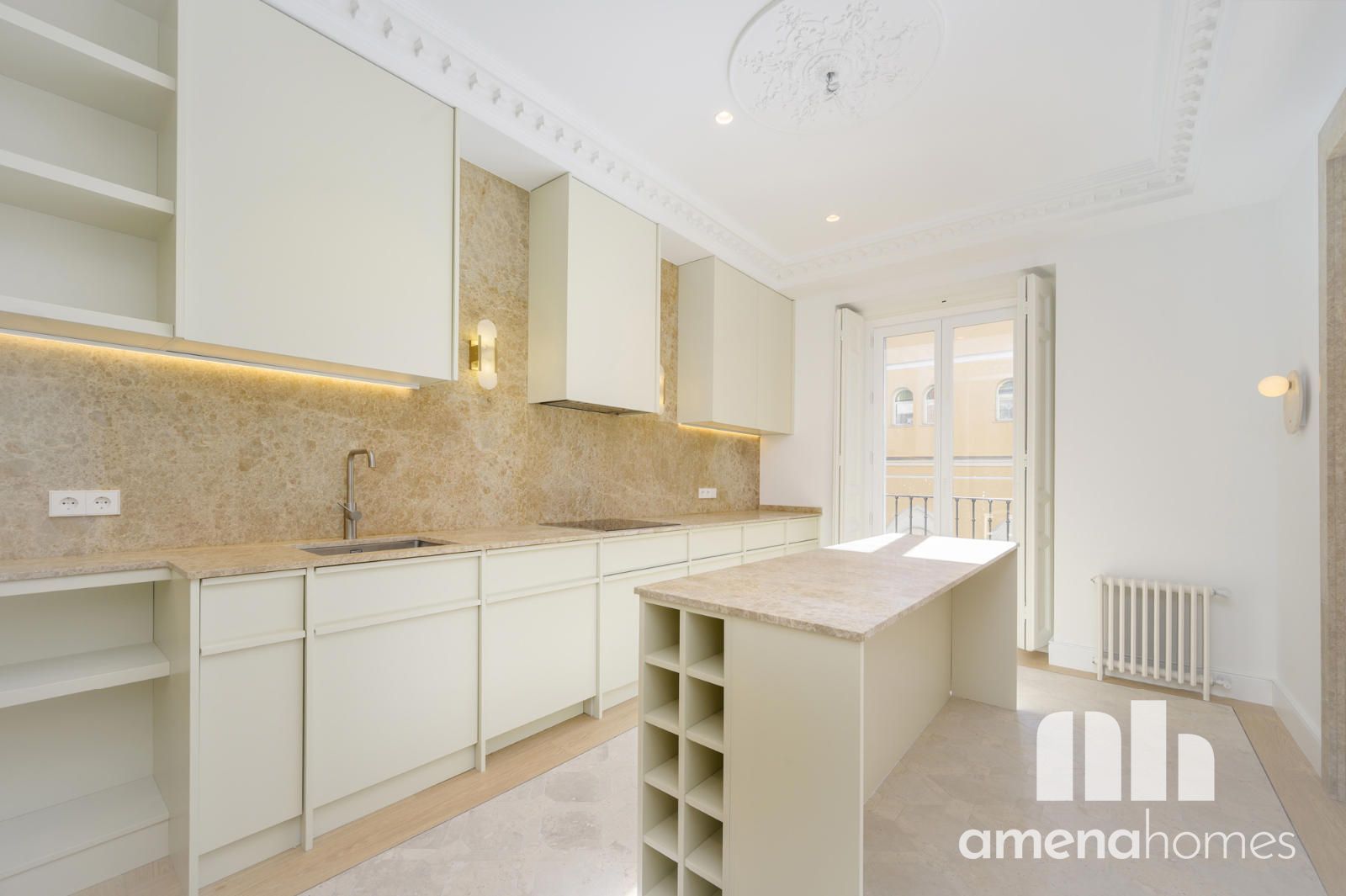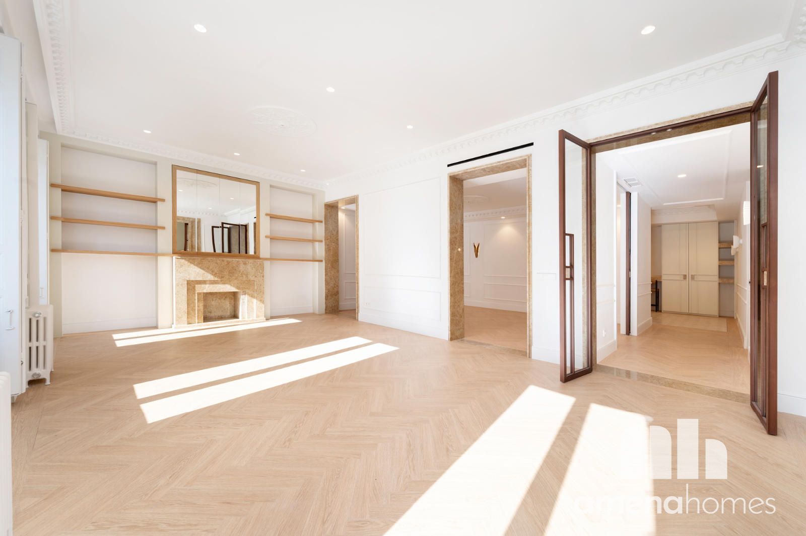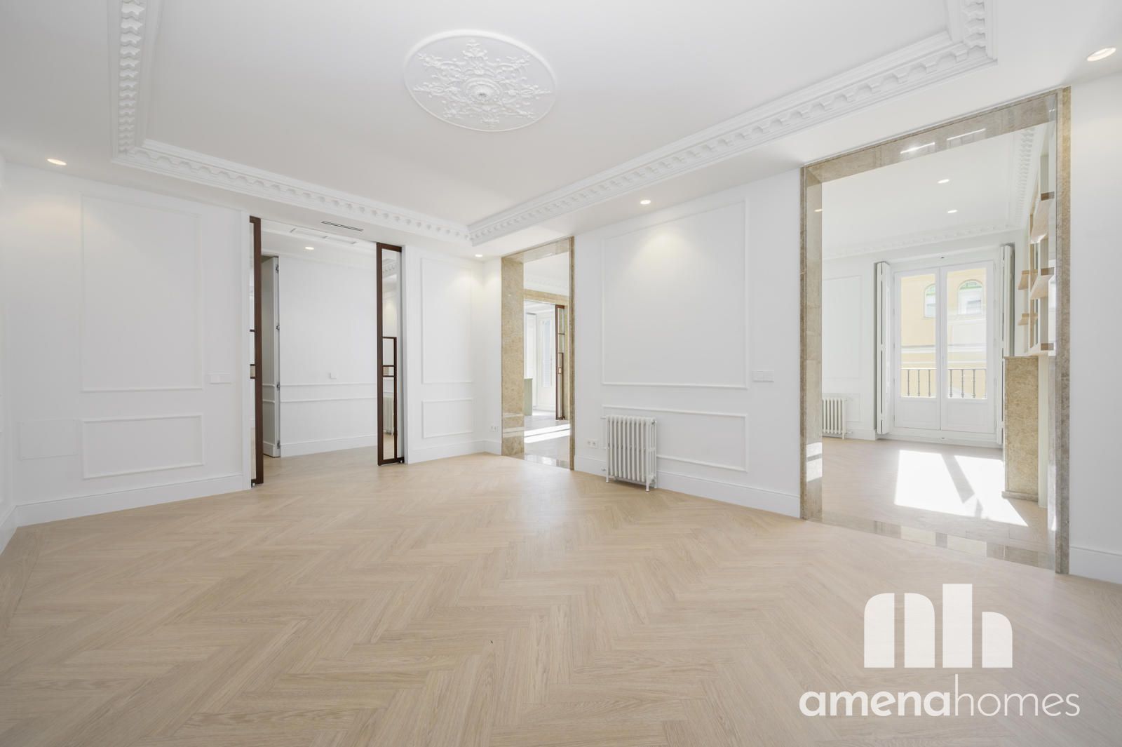Amena Homes Real Estate presenta esta exclusiva y elegante vivienda ubicada en una representativa finca clásica, completamente reformada y a estrenar con un cuidado diseño que combina la esencia arquitectónica original con un estilo contemporáneo y sofisticado en pleno centro de Madrid.