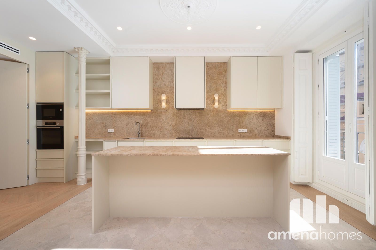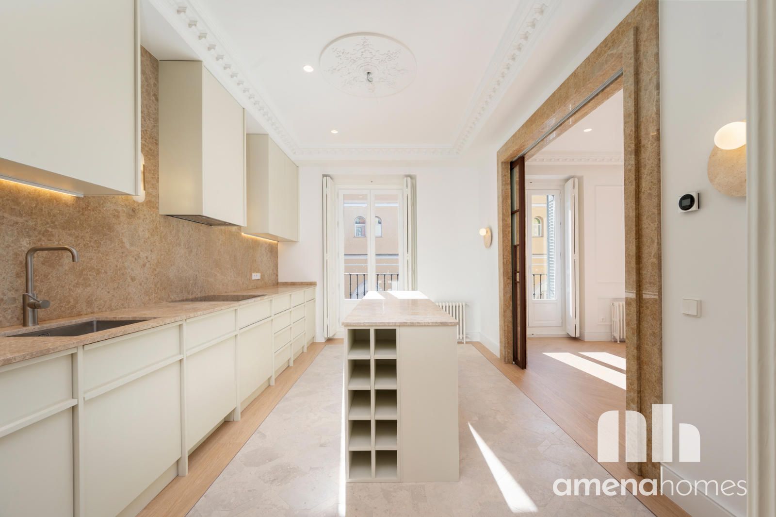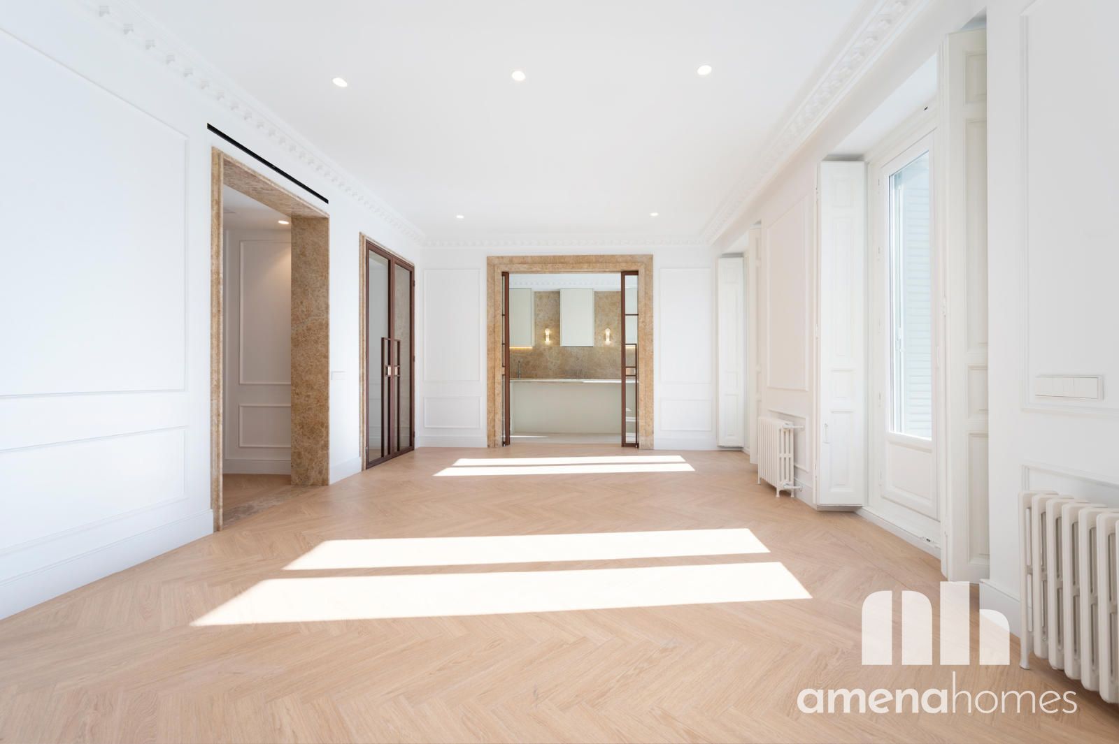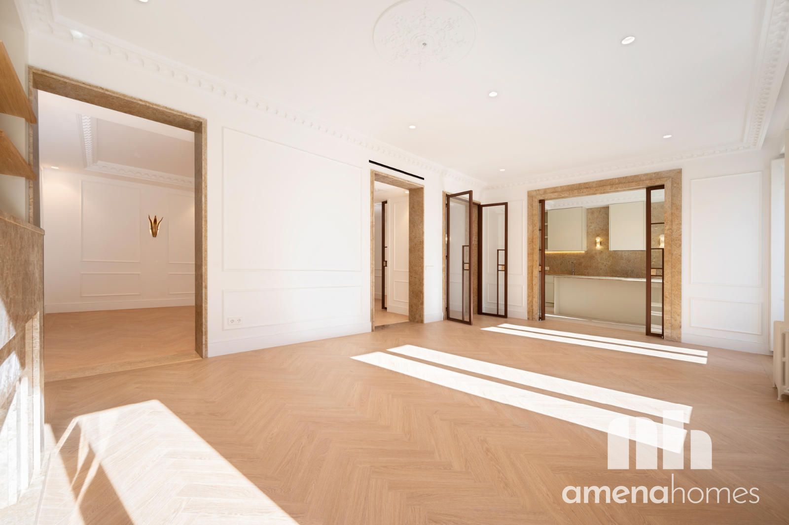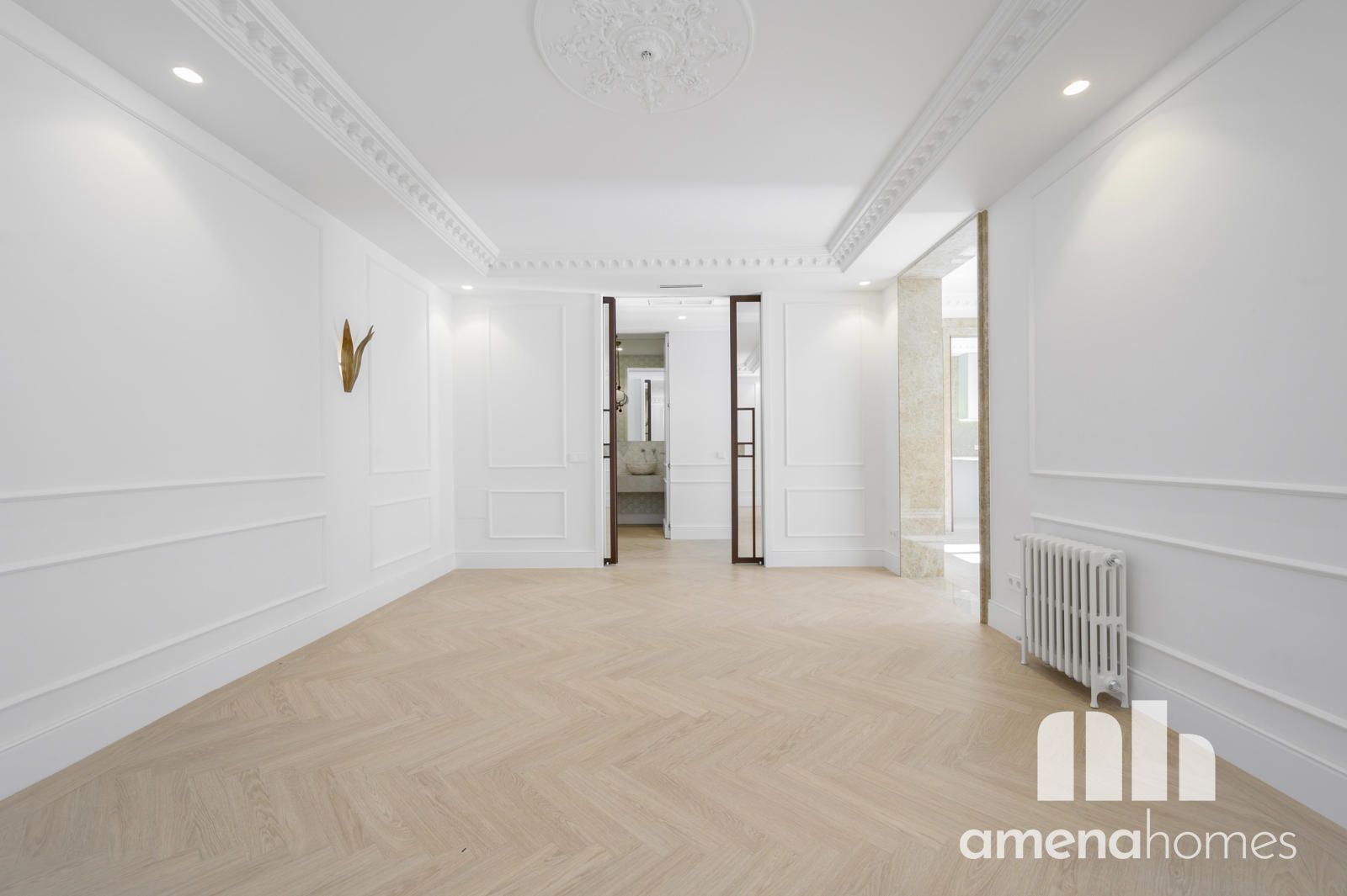 Ubicada en un edificio representativo de 1910, en una de las zonas más vibrantes del centro de Madrid, esta espectacular vivienda exterior ha sido completamente reformada respetando la esencia de la arquitectura clásica madrileña, reinterpretada con un diseño contemporáneo de alto nivel