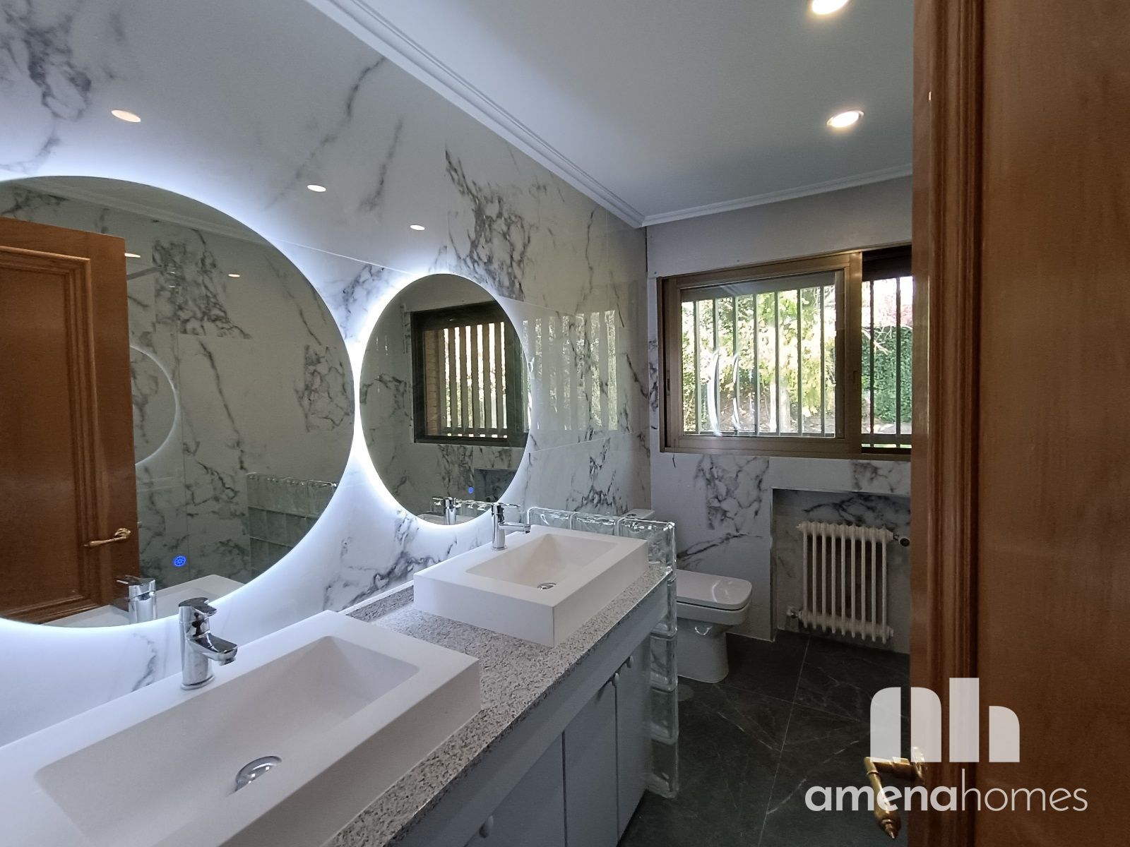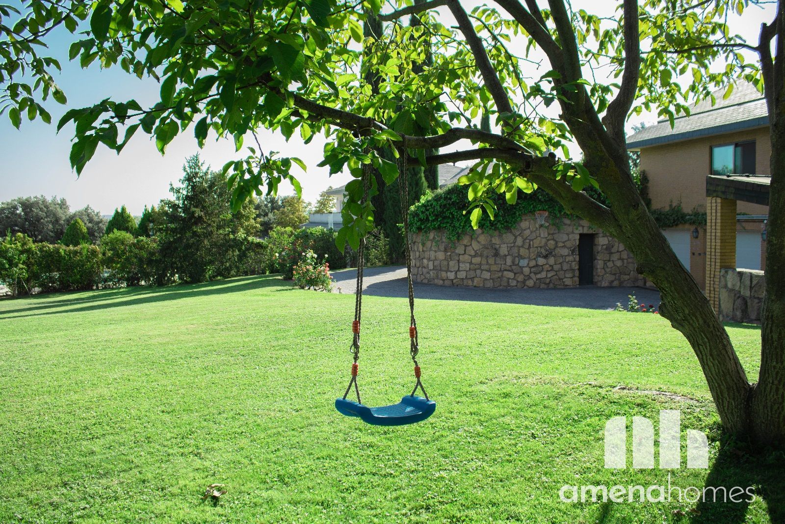 AMENA HOMES alquila esta bonita vivienda unifamiliar de 472m2 sobre parcela de 3.300m2, muy bien ubicada, cerca de la entrada de la urbanización y con salida directa al campo de golf. Está situada en la prestigiosa urbanización de Ciudalcampo que cuenta con seguridad privada.