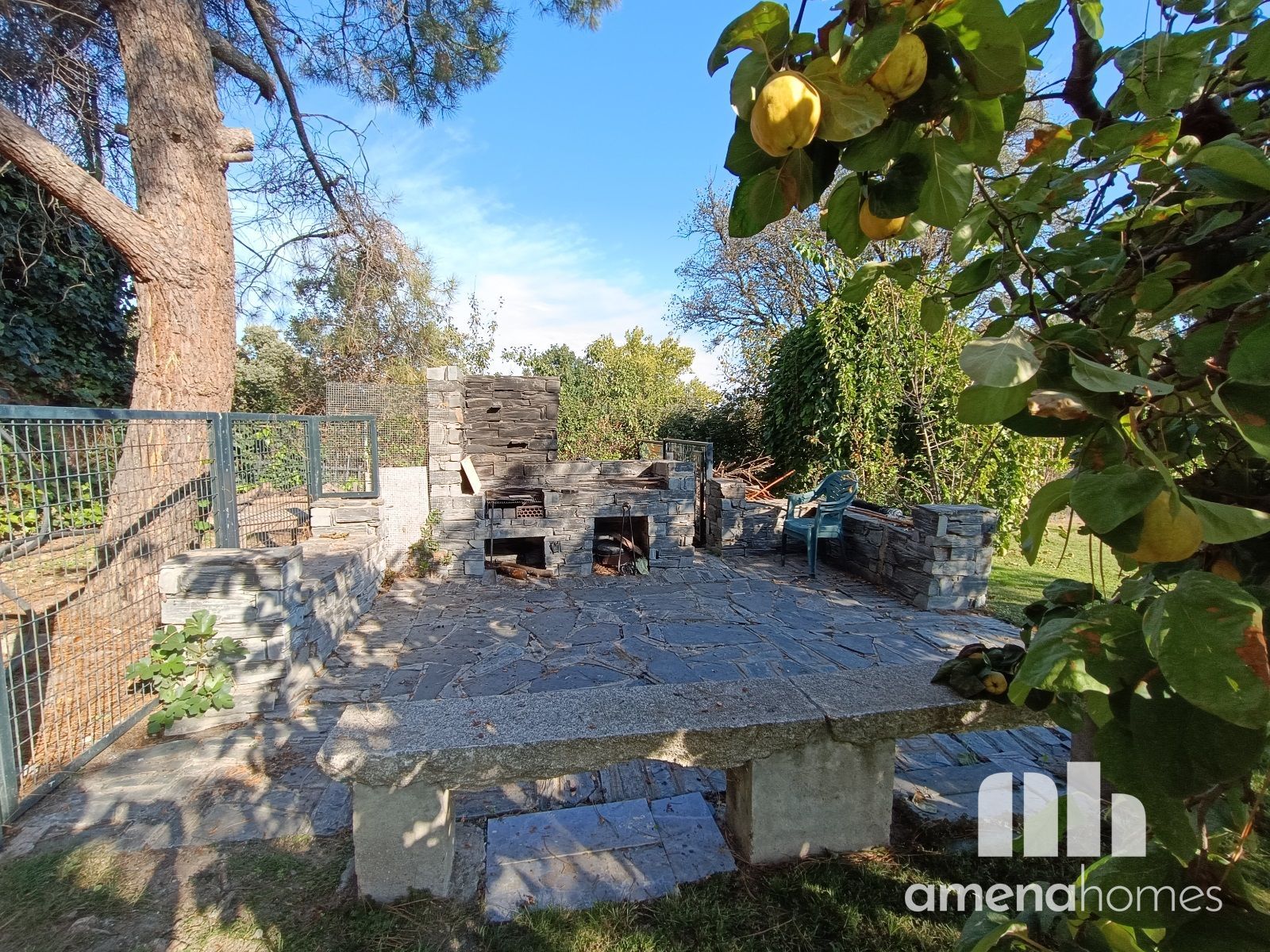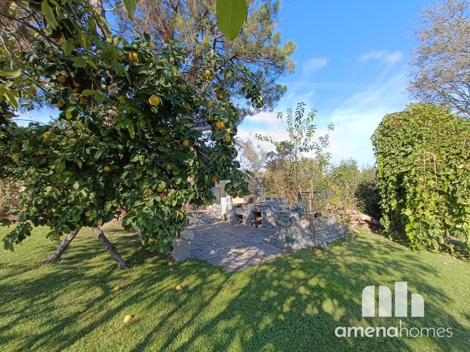 La casa se dispone sobre un bonito jardín, con variedad de árboles, un porche delantero y otro trasero. Zona de barbacoa y piscina