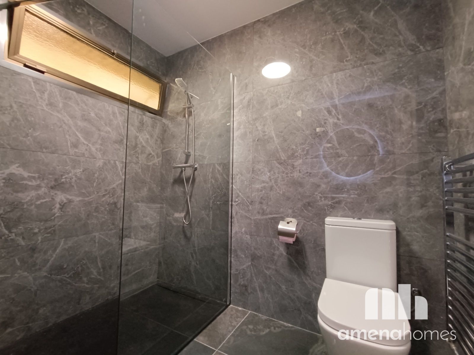 En la primera planta la casa cuenta con una gran habitación con aire acondicionado, podría ser un despacho o un sexto dormitorio ya que también dispone de baño completo.